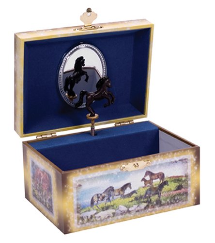 Young one loves horses and music boxes, and this jewelry box is perfect for her. You need to be careful of the horse when closing the box, but you can\'t go wrong with this at it\'s price. (About $[...] as I write this).