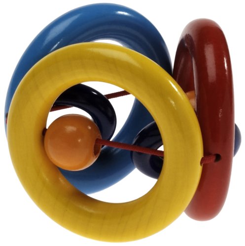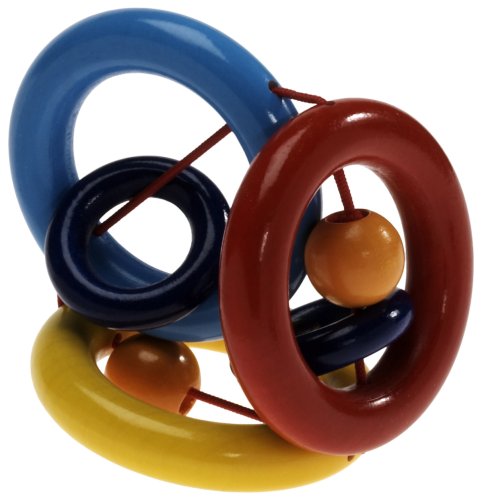 We purchased this toy as part of our 4-month old\'s \"natural\" and wooden toy collection to replace his plastic (and made-in-China) toys. We like it because it is made in Germany and is created with all water-based non-toxic stains on natural wood. He loves it for many reasons - the sounds that it makes, the fact that he can wrap his tiny fingers around the rings, and it is one of his first choices to teeth on as well (he has 2 teeth and working on more). We will be purchasing additional toys from this company in the future.