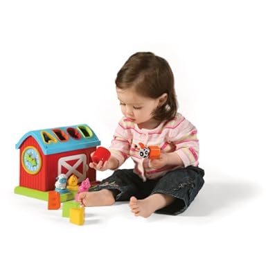 It's shaping up to be a fun day at the Shape Sorting Barn. Here baby cansort it all out matching shapes andletters while learning numbers, colors and animal names too! When it's clean-up time just heard everyone inside,grab the handle and go - keeping it all together for the next time baby plays!