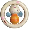 HABA 0986 - Friendly sheep teething ring. Ring made of beech wood with detachable sheep made of cotton/polyester and terry velvet. Measures 3.5" in diameter. Recommended for 6 months and up. Made in Germany.