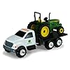 8" John Deere tractor and wagon set,Set includes one John Deere tractor with flarebox wagon,Tractor features a steerable front axle, rear hitch, and die cast hood,Wagon features include a movable front hitch and opening tail gate. Set measures 17.50" x 4.75" x 5.25"