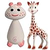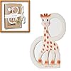 To follow baby everywhere.0 month above. This set is both playful and comforting. Contains : The well-known Sophie la giraffe, in natural rubber (phtalate-free), who has been part of babies" lives for more than 40 years. Slender, flexible, and soft, baby can squeeze and chew her in total safety. Lovable and amusing, she laughs when her body is queezed. Sophie the giraffe plush to learn again all the softness of Sophie. With a bell sound inside.